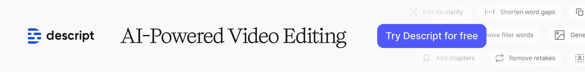 Edit video like a doc. Record, transcribe, cut filler words, add captions, and publish—without jumping between five apps.